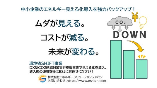 株式会社エネルギーソリューションジャパン(略称ESJ、東京都中央区、代表取締役:田崎剛史)は、令和6年度に引き続き、令和7年度も環境省SHIFT事業「脱炭素技術等による工場・事業場の省CO2化加速事業」におけるDX型CO2削減対策実行支援事業の支援機関として採択されました。