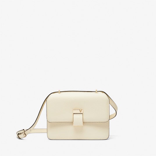 またペルガメーナ ホワイトのノーロ バッグは、新時代のアーバンクラフトアイコン。ヴァレクストラのアーカイブにある 1950年代のデザインにインスパイアされたV字カットのクロージャ―と、調節・取り外し可能なクロスボディストラップが特徴で、タイムリーさを讃えます。シグネチャーであるブラックのラッカー仕上げのコスタの縁取りがヴァレクストラらしさを際立たせています。