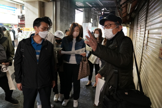 3月25日には大阪コリアタウン一帯で、藤本巧作家の写真作品の撮影場所を周り、写真に込められた当時の時代相と現在の姿を直接比較し、体験してみる野外公演会が開催されました。