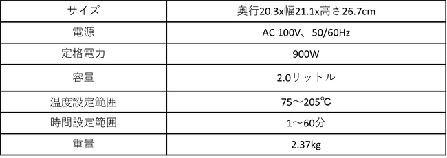 蒸し焼きをする「ロースト」・「温めなおし」・お菓子などを作る「ベイク」の機能があり、料理のプロが開発した60種類のオリジナルレシピを楽しむことができます。 料理が億劫になりがちな一人暮らしや、家事の時間を取りづらい共働き家庭、調理器具が限られるア ウトドアにもピッタリな簡単時短調理家電です。