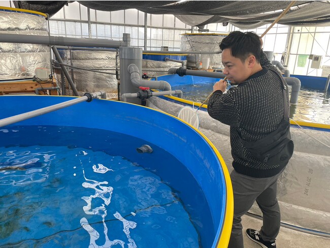 転職エージェントを事業とする株式会社ユニポテンシャル(東京都渋谷区神宮前 代表取締役 蛎田一博)が運営する鮨屋「有楽町かきだ」大将のかきだが、2023年2月15日に「温泉サバ陸上養殖場」を視察した。