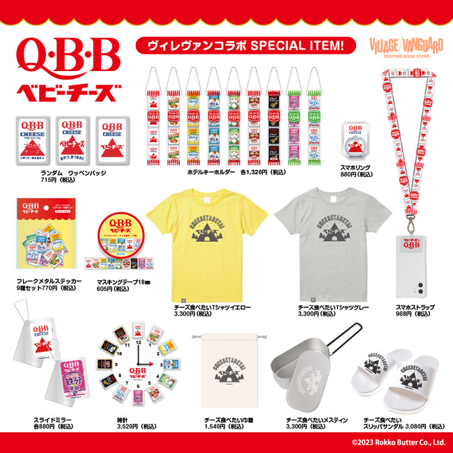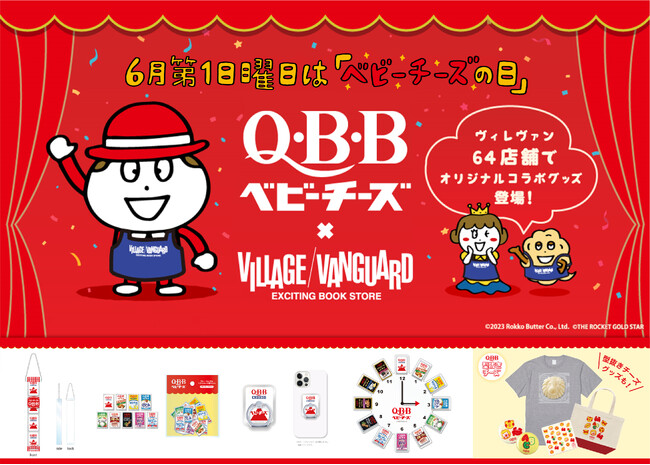六甲バター株式会社(本社:兵庫県神戸市、代表取締役社長兼CEO:塚本浩康)は、株式会社ヴィレッジヴァンガードコーポレーション(本社:愛知県名古屋市、代表取締役社長:白川篤典)と基幹製品である「Q・B・Bベビーチーズ」のコラボグッズを販売します。「ベビーチーズの日」(6月第1日曜日)を記念して、5/26(金)~6/4(日)まで全国のヴィレッジヴァンガード64店舗にて店頭販売を実施。グッズ自体史上初となる【Q・B・B型抜きチーズ×ヴィレッジヴァンガード】コラボグッズが登場します!さらに店頭販売に先駆けて、5/1日(月)12時~6/11日(日)迄オンラインにて受注販売を開始!オンラインでしか買えない商品も数多くございますのでお見逃しなく!