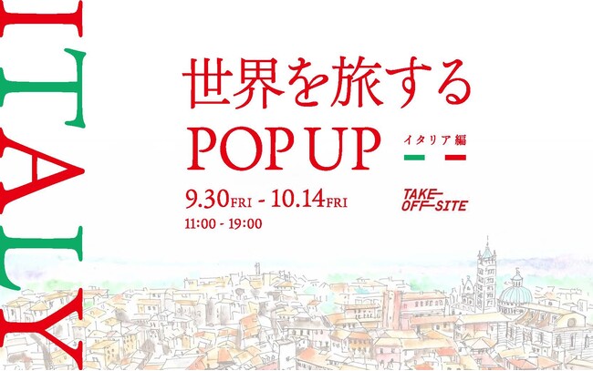 (株)立飛ストラテジーラボ(本社:東京都立川市/代表取締役:村山正道)が運営する複合施設GREEN SPRINGS内のTAKEOFF-SITEにて、9月30日(金)~10月14日(金)「世界を旅するPOP UP~イタリア編~」が開催されます。