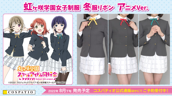「虹ヶ咲学園女子制服 冬服リボン アニメVer.」は、通販を含むコスパオフィシャルショップ等でご予約受付中です。