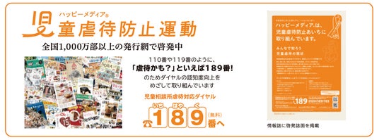 株式会社関西ぱど(本社:大阪市西区靭本町1-10-24 三共本町ビル5F 代表取締役 富岡 紀幸)は、児童虐待防止を推進するため、全国で発行する地域みっちゃく生活情報誌(R)の「児童虐待防止運動」に参加しています。これは、児童相談所虐待対応ダイヤル「189(いちはやく)」の周知のため、情報誌の記事掲載やポスター掲出などに取り組む運動です。