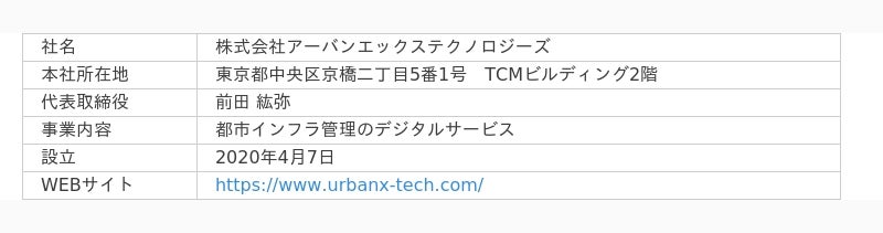 アーバンエックスは、「しなやかな都市インフラ管理を支えるデジタル基盤をつくる」をビジョンとして、道路点検AI「RoadManager」、市民協働投稿サービス「My City Report for citizens」、盛土管理DXシステム、三井住友海上火災保険株式会社と共同開発・運営している「ドラレコ・ロードマネージャー」などのプロダクトを、主に行政インフラ管理者向けに展開している、東京大学発のスタートアップです。サービス全体で累計40を超える自治体での導入実績をベースに、今後、当社技術を活用した民間事業者向けの展開も行いつつ、さらに多くの都市インフラを対象としたソリューションの提供を目指します。