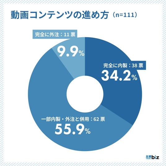 マーケティング・広報・ブランド戦略で動画コンテンツを活用する企業の担当者を対象に、動画制作の内製・外注率と課題について実態調査