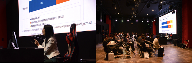 施設内覧会後は、「北九州市イノベーション人材マッチング支援センター(人材流動化支援施設)」と「北九州市テレワーク推進センター」の国家戦略特区活用施設である北九州イノベーションセンターの多目的スタジアム内で、北九州市主催の"北九州市国家戦略特区・テレワーク推進セミナー"を開催し、国家戦略特区での最新の取り組みや、「東田・未来都市プロジェクト」における先端技術の実証実験結果などの紹介を行いました。