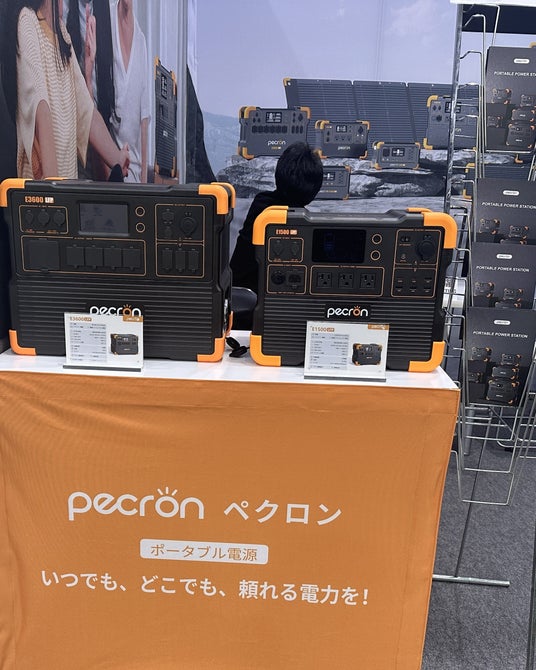 今回の展示会では、PECRONの主力商品であるリン酸鉄リチウムイオン電池を採用したEシリーズを中心に、家庭用蓄電池や屋外DIY作業、キャンプ、車中泊、緊急時の電源確保など、幅広い用途に対応する製品を展示しました。以下に、注目の型番をご紹介します。