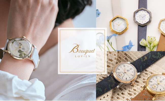 ブーケは時には甘く、時には凛々しく人々の生活を彩ります。固まった一つのイメージに収まりきらない、柔軟性とバイタリティーのある現代女性と共に、 様々なシーンを過ごすパートナーのような存在の時計が「Lov-in Bouquet」シリーズです。