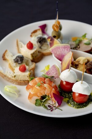 スイーツだけでなく、セイボリーもお楽しみいただけるのが「金鼓」〈KONKU〉の魅力。ホテルで人気のオードブルを、目にも可愛く彩り豊かなピンチョスにアレンジいたしました。カプレーゼのピンチョス、ハニーピスタチオのカナッペなど、紅茶だけでなくついついお酒が進んでしまいそうなラインナップ。