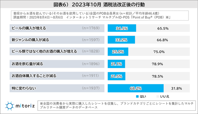 2023年10月の酒税法改正後に「ビールの購入が増える」と回答した人は34.5%