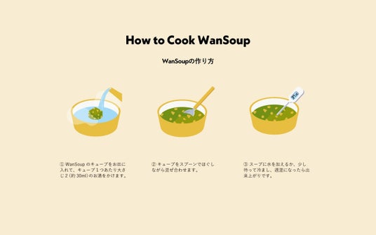その使い方は、水分・栄養補給のためのスープとして、ごはんのトッピングやおやつとしてなど、シチュエーションに応じて様々なアレンジをお楽しみいただけます。心も体も満たされるWanSoup生活で、みずみずしい毎日になりますように。