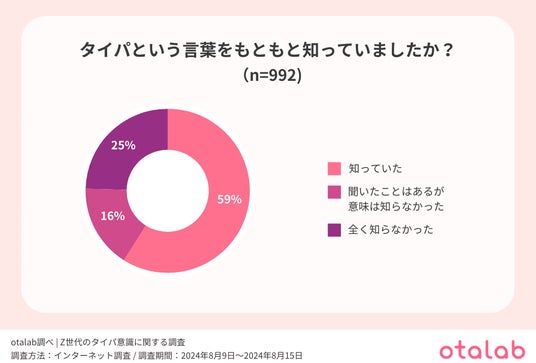 まず最初に、Z世代間での『タイパ』という言葉の認知度について知るべく、「タイパという言葉をもともと知っていましたか?」という質問を行った。