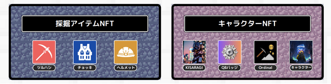 採掘アイテムNFT、キャラクターNFTの入手方法/機能