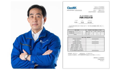 なお、今回取得した技能証明のうち飛行機(二等)には、飛行機のマニュアル操縦や滑走路による離着陸が試験項目に含まれていますが、当社のVTOL型ドローン「エアロボウイング」にはこうした操作上の困難を克服するために、飛行機モードでは自動飛行を行い、滑走路を不要とする垂直離着陸技術が実装されています。技術開発により不要となった技能を習得しなければならない状況に対して、機体の仕様に合った技能の組み合わせで資格を取得できるように、限定事項の変更やVTOL用の技能定義など、当局に対して働き掛けを行っています。