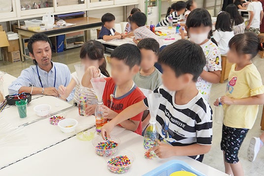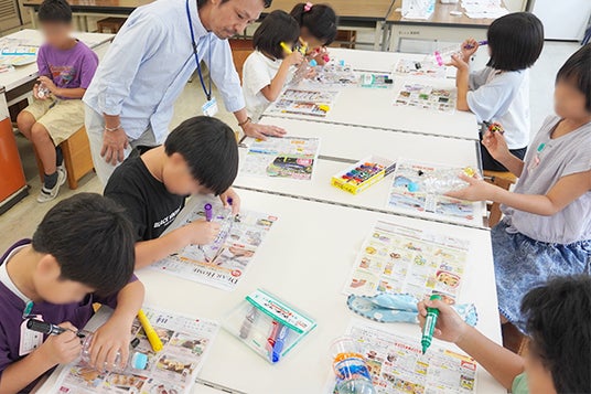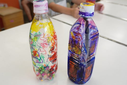 ペットボトルに描いた絵と中に入れるビーズの色を合わせたり、絵ではなく柄をデザインした子がいたりと、それぞれのこだわりが出ていたのが印象的でした。