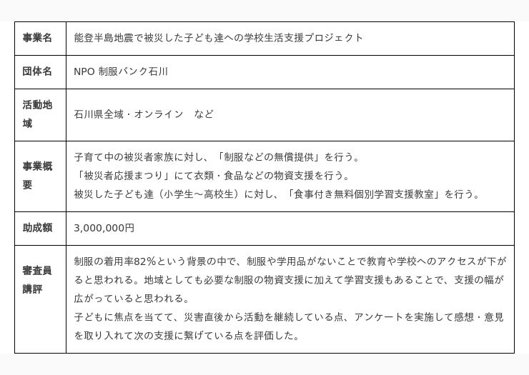 令和6年(2024年)1月1日に発生した「令和6年能登半島地震」の甚大な被害を受け、公益財団法人ほくりくみらい基金(所在地:石川県金沢市、代表理事:永井三岐子)は石川県域のコミュニティ財団として、「令和6年能登半島地震 災害支援基金」を立ち上げ、支援を続けてきました。