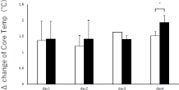 3日目は△changeにおいて、ミスト散布群と比較して、ミストなし群で高値を示す傾向が認められた。(p=0.089 )
