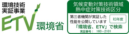 『フィールド冷却細霧システム』は、2021年に「環境省環境技術実証(ETV)事業 気候変動対策技術領域」に選定され、第三者実証機関の実験により性能効果が実証されました。また、本製品は、国土交通省の「NETIS(新技術情報提供システム)」※2 にも登録されています。