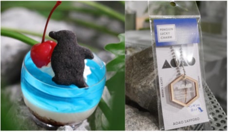 商品内容:フェアリーペンギンの⻘みがかったグレーの体色をイメージした、⻘いゼリーと滑らかなレアチーズを組み合わせた涼しげなパフェ。卵型のカップは卵からペンギンが誕生する姿をイメージしています。