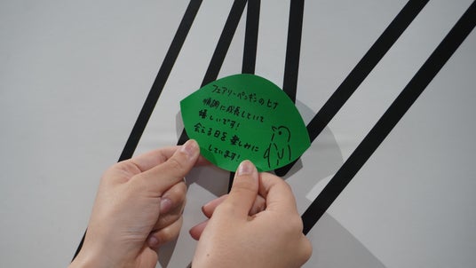 すくすく成長するフェアリーペンギンの雛への応援メッセージを葉っぱ型のシールに自由に書いて貼り、大きな「ハッピーハッピーツリー」をつくる参加型展示を行います。