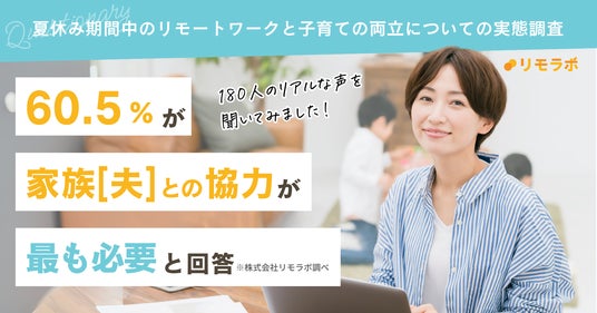 「女性のキャリアをシームレスに」の実現に向けて個人向けリモートワーク実践スクール事業「リモラボ」を運営する株式会社リモラボ(東京都渋谷区、代表取締役 佐伯正邦、以下「リモラボ」)は、女性たちにとってのより良いはたらき方を追求し、リモートワークに不随する課題を解決していくべく、リモートワークを実践しながら子育て中、または過去に子育てを経験した女性180名を対象に「夏休み期間中のリモートワークと子育ての両立についての実態調査」を実施いたしました。(調査実施期間:2024年7月11日~13日)