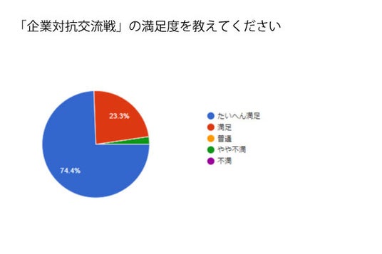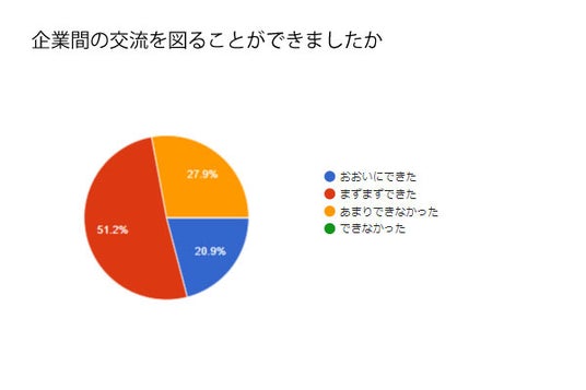 この「企業対抗交流戦」の目的のひとつであった「企業間の交流が図れたか」という点では、回答者の約3割が少し物足りなさを感じたようです。明確なお昼休み時間の設定がなかったことが、その要因でした。
