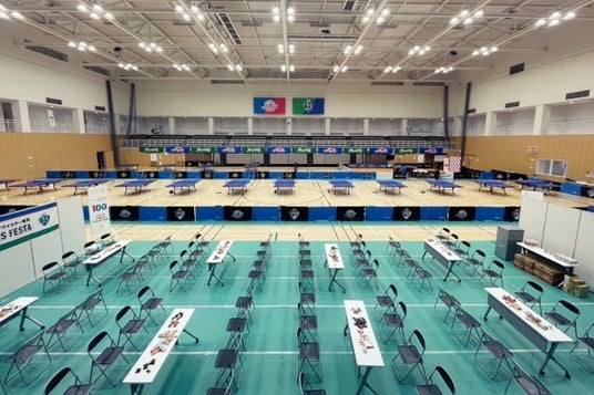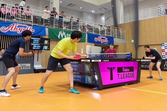 会場にはTリーグの試合で実際に使用している「本番台」を設置し、各カテゴリーの決勝を本番台で実施。8月に開幕するTリーグの訴求を行いました。
