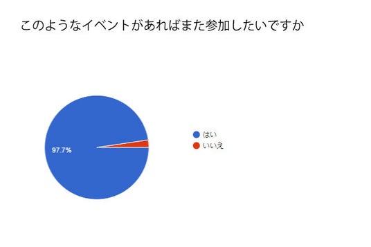 「また参加したいか」という問いには、1名を除いて全員が「参加したい」と回答。今後の励みになるご意見を多数いただきました。