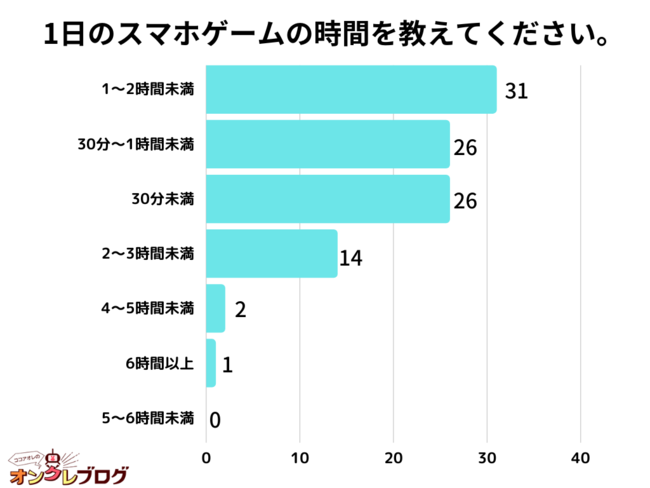 合同会社Makima(https://makima.co.jp/)が運営するゲームセンター情報メディア「ココアオレのオンクレブログ」(https://cocoaorei.work/)は、日本全国の10代以降の男女の方を対象に「1日のスマホゲーム時間の時間を教えてください。」についてのアンケート調査を実施しました。