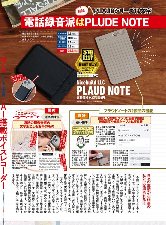▼家電批評2025年4月号「PLAUD NOTE」受賞ページ