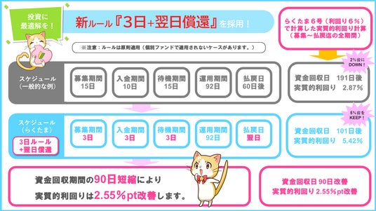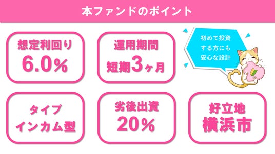 『らくに、たまる』をコンセプトに、不動産知識や投資経験が少ない方でも、1万円から楽しく安心して参加できるファンドをつくります。『らくたま』は投資家ファーストでいつも考えます。