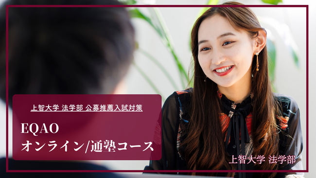 〈上智大学法律学科の公募推薦入試に強い〉上智大学公募推薦入試において高い合格率を誇るEQAO。公募推薦入試で上智大学法学部に合格したい高校1・2・3年生は必見です。EQAO創業者の玉村と1時間無料で、上智大学法学部についてや、上智大学の公募推薦入試の対策方法、上智大学全学部共通の自己推薦書の書き方、法学部で課せられるレポートの書き方、上智大学法学部の面接で求められる人材など、幅広く相談可能です。お一人様一回限りの受講となります。2023年12月15日より受付開始となります。定員は30名とさせていただきます。定員に達した時点で受付を停止いたします。上智大学総合法学部に現役合格を目指す方はぜひ応募してください。※保護者の方も受講可能です。上智大学法学部に合格するなら上智公募推薦入試専門塾EQAO! EQAO は上智大学公募推薦入試に圧倒的な自信がございます。