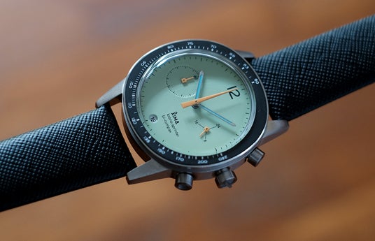 バウハウスとディーター・ラムスのデザインにインスパイアされたクロノグラフモデル。特徴的なクッション型ケースと、37mmというコンパクトなサイズ感が現代的なヴィンテージ感を演出します。洗練されたデザインに加え、カラーの異なる4モデルが展開されており、視覚的に魅力的です。