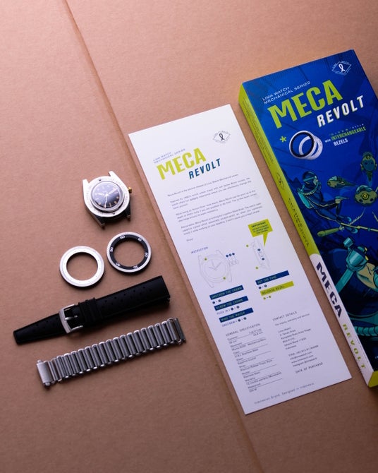 クラシックな外観と現代的な機能が融合したユニークなツールウオッチ。38mmのコンパクトなケースに、日本製の自動巻きムーブメントを搭載。シルバーベゼルとブラックベゼルが簡単に交換可能で、針とインデックスにはダークグレーの蓄光塗料が使用されています。特別な数量限定モデルとして、デザインアーティスト“Seconde Seconde”とのコラボレーションによる“MECA REVOLT X seconde/seconde”もラインナップ。リマウォッチのシンプルさにユーモアを加えた特別なコレクターズアイテムです。