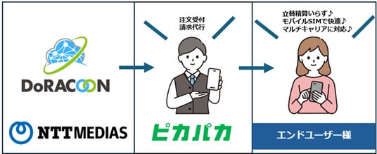 株式会社ピカパカ(本社:東京都中央区、代表取締役 原 基記、以下ピカパカ社)と、エヌ・ティ・ティ・メディアサプライ株式会社(本社:大阪府大阪市、代表取締役社⾧ 伊賀 公治、以下NTTメディアサプライ社)は、NTT西日本グループが提供するクラウドSIMテクノロジーを採用したインターネット接続サービス「DoRACOON」の販売・注文取次業委託契約を締結しました。
