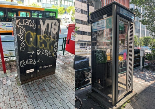 電柱に加え、地上機器・電話ボックスなどへの落書きも迅速に消去可能に