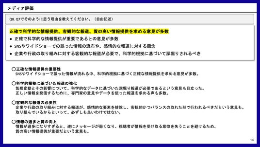 <気候変動対策に関するメディア報道についての評価>