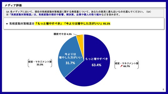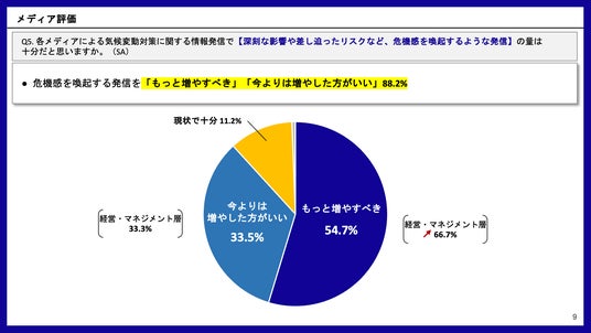 一般社団法人Media is Hopeは、気候変動イニシアティブ(JCI)参加企業や団体に向けて「気候変動対策に関するメディア報道についての意識調査」を実施した。