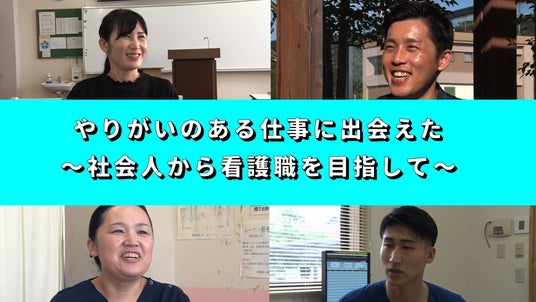 現在は別の仕事をされていて、人の役に立ちたいと看護職を目指そうと考えている方、あるいは看護職の道に進もうか迷っている方にも、ぜひ、この動画をご覧頂ければ幸いです。