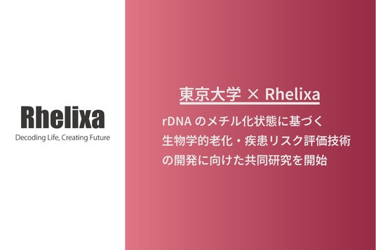 株式会社Rhelixa(代表取締役社長:仲木 竜、以下「Rhelixa」)と国立大学法人東京大学(研究代表者:小林 武彦 教授、以下「東京大学」)は、ヒトの生物学的年齢をより高精度に推定し、老化や疾患リスクを非侵襲的に評価する技術の開発を目的とした共同研究を開始しました。本共同研究は、ヒトの老化過程に深く関わるとされるrDNA(リボソームRNA遺伝子)領域のメチル化状態や構造変動に着目し、新たな生物学的指標の確立を目指す取り組みとなります。両者は本取り組みを通じ、基盤研究から社会実装へとつながる老化評価技術の開発を進めてまいります。