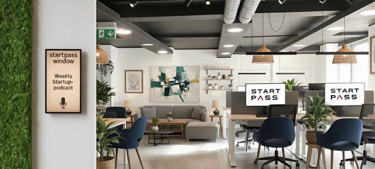 StartPass Windowは、スタートアップ業界に特化したオフィスサイネージメディアとして、スタートアップに携わる方々が日常的に目にする場所に設置されています。