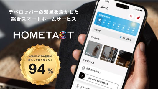 「HOMETACT」は、国内大手から世界の最新家電まで、メーカー横断で照明・空調・給湯器・スマートロックなどを一つのアプリでまとめて操作できます。既築マンションへの導入はもちろんのこと、後付け型スマートホームとは異なり、住まいのインフラとして新築マンションや戸建ての企画・設計段階から導入できる点に加え、きめ細やかな導入支援、導入後の万全なサポート体制や拡張性の高さを多くの企業から評価いただいています。実際に利用者の約94%が暮らしが良くなったと感じており(※)、入居者満足度も高く、賃料アップや物件価値向上にも寄与しています。提携パートナーおよび導入物件は、現在全国へと拡大しています。