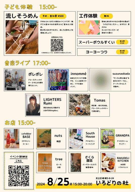 日時:2024年8月25日(日)15:00~20:00(小雨開催・フードは売り切れ次第終了)
