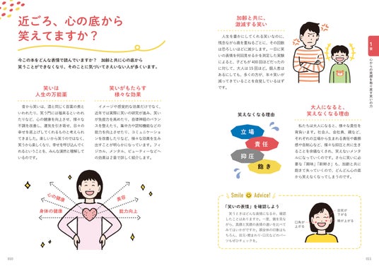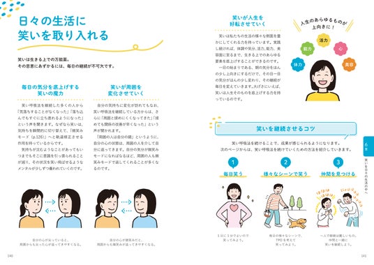 そこで本書では、笑いとヨガの呼吸法を融合させたエクササイズとして練習することで、心の底から笑ったような爽快感を味わえるようにしました。毎日少しずつ続けることで、心身が整い、よりよく生きることができるようになります。