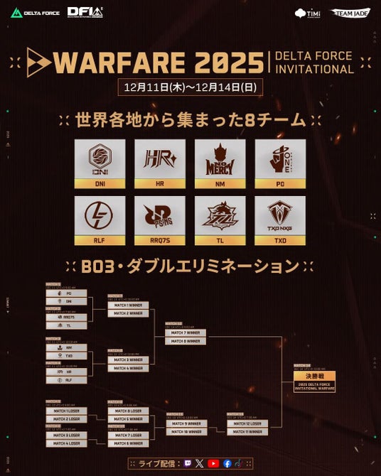 4日間を通して、戦術・連携・ビークル運用が勝敗を分ける、白熱のバトルが生中継されます。