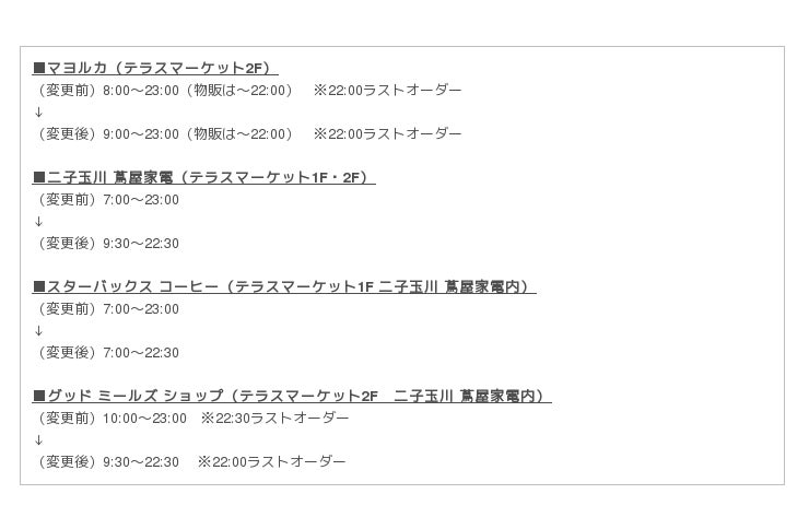 4月1日(金)から下記店舗は営業時間が変更になっています。