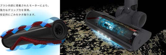 ブラシ内部のモーターが安定したゴミのかき取りを実現