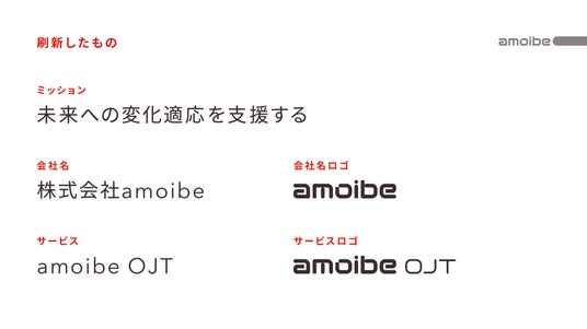 新しい社名はamoibe(アモイブ)です。ギリシャ語の「ἀμοιβή (amoibē)」をアルファベット表記したもので、「変化」や「変容」を意味し、単細胞生物のアメーバの語源にもなっています。